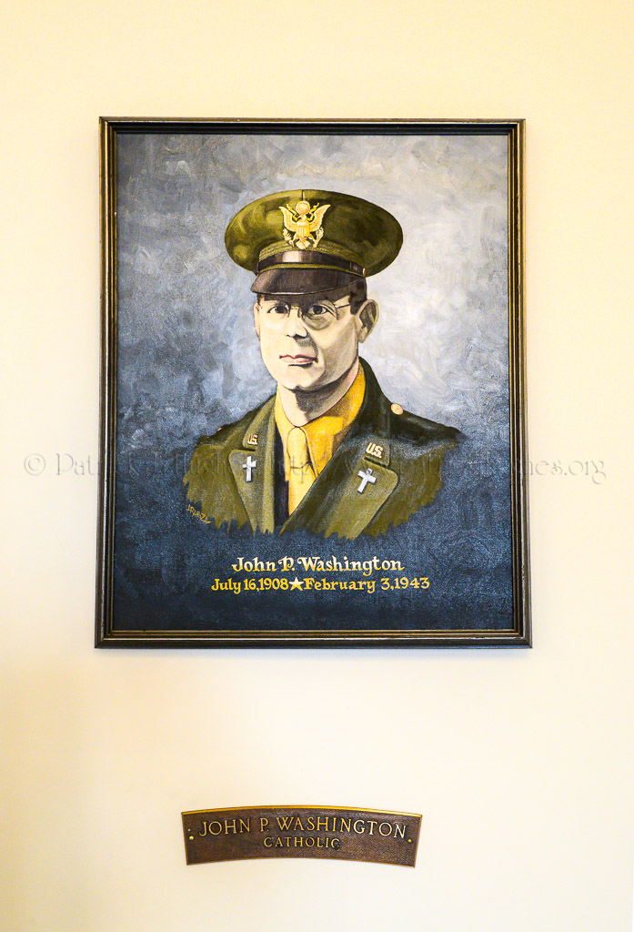 Father Washington boarded the U.S.A.T. Dorchester at the Embarkation Camp at Boston Harbor in January 1943 en route to Greenland. Chaplain Washington was killed in action on February 3, 1943, when the Dorchester was sunk by a German U-boat. Chaplain Washington was posthumously awarded the Purple Heart and Distinguished Service Cross.