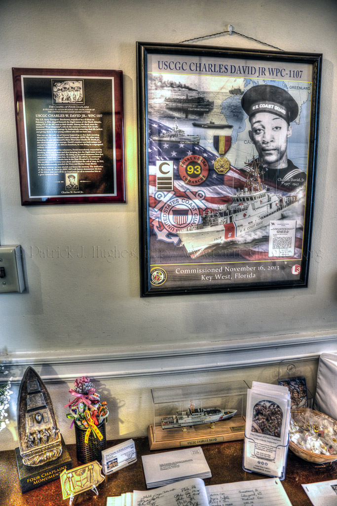 Charles Walter David, Jr. served as a Steward's Mate 1st Class in the United States Coast Guard aboard the USCGC Comanche escorting a convoy that included the USAT Dorchester. David volunteered to dive into the frigid waters to rescue exhausted crew and passengers from the Dorchester. David also rescued several other Comanche crew members, who grew exhausted.